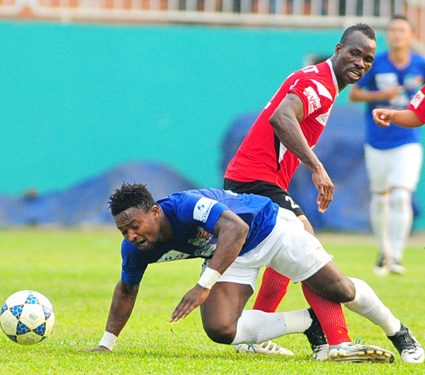 Mới trải qua 2 trận đấu nhưng ĐT.LA (phải) đã nếm trải sự khác biệt cực lớn giữa V-League và hạng Nhất. Ảnh: V.V